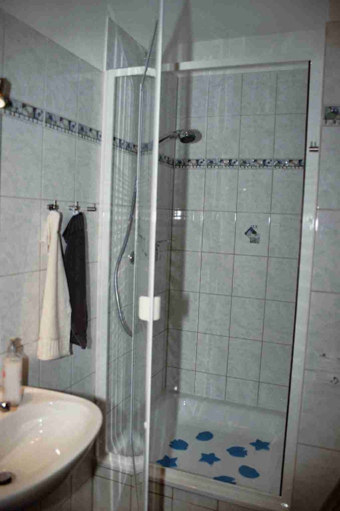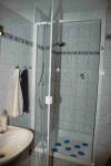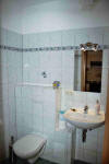 Bad: WC, Dusche, Waschbecken.